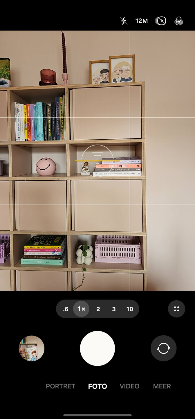 Je telefoon kan niet feilloos aanvoelen wat jij het belangrijkst vindt op de foto. Soms wil je scherpstellen op een product, maar legt je telefoon alle focus op de achtergrond. Gelukkig valt daar iets aan te doen: tik met je vinger op het product of de persoon die je wilt uitlichten. Dan stel je op precies dat punt scherp.
