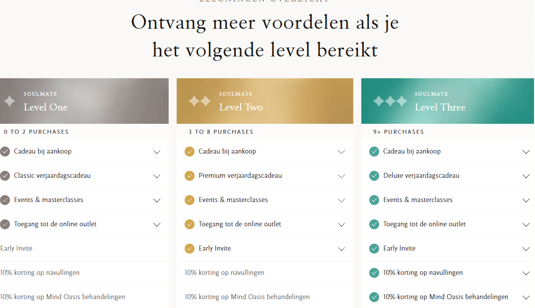 Ook winkels werken vaak met een loyaliteitsprogramma. Hier zie je hoe het puntensysteem van Rituals eruitziet.
