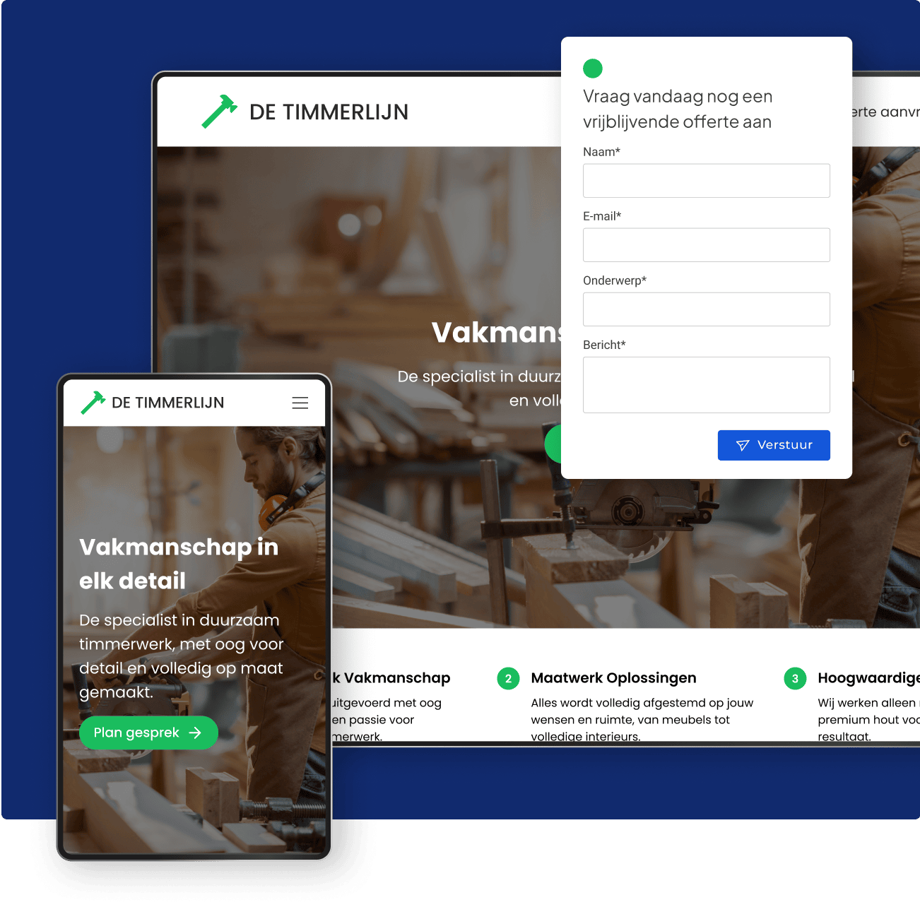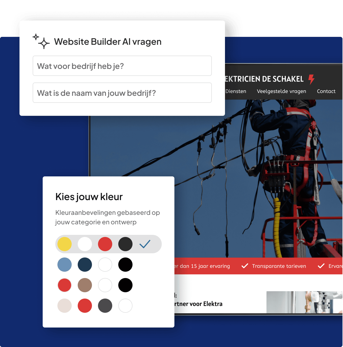 Bouw eenvoudig zelf je aannemer website, of laat AI het werk voor je doen. Met de gebruiksvriendelijke Website Builder sleep je zonder technische kennis je website in elkaar.
