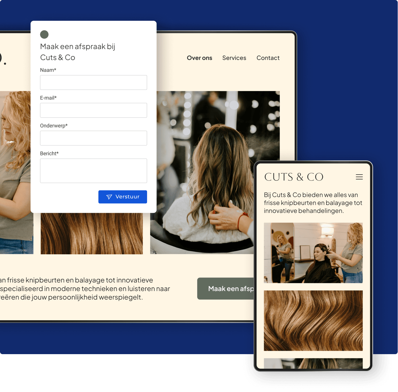 Bouw eenvoudig zelf je kapperswebsite, of laat AI het werk voor je doen. Met de gebruiksvriendelijke Website Builder sleep je zonder technische kennis je site in elkaar.