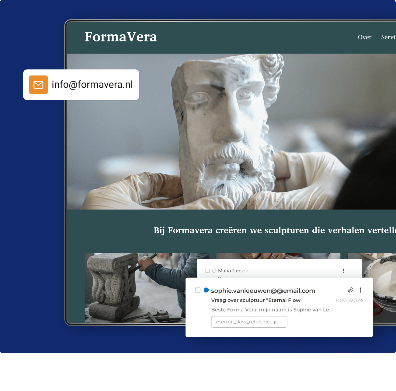 Creëer gemakkelijk en snel een kunstwebsite, zonder technische kennis. Bereik meer met onze alles-in-één kunstenaar-oplossing: domein, website en e-mail.