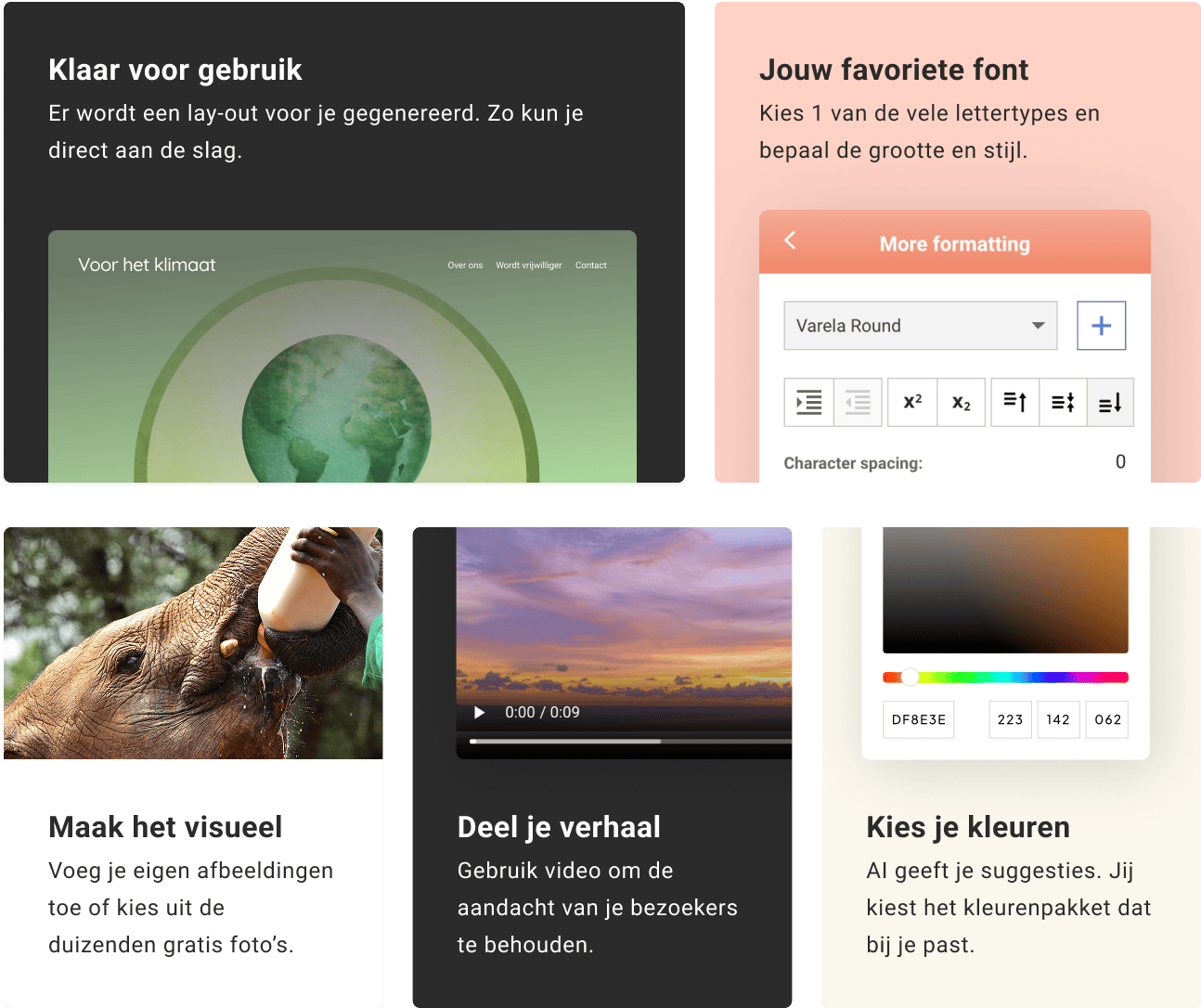 Met behulp van AI heb je razendsnel een website voor je stichting. Vertel kort over de stichting en laat AI je website voor je bouwen. Pas de kleuren, teksten en foto's aan en voilà! Je bent klaar voor online succes.