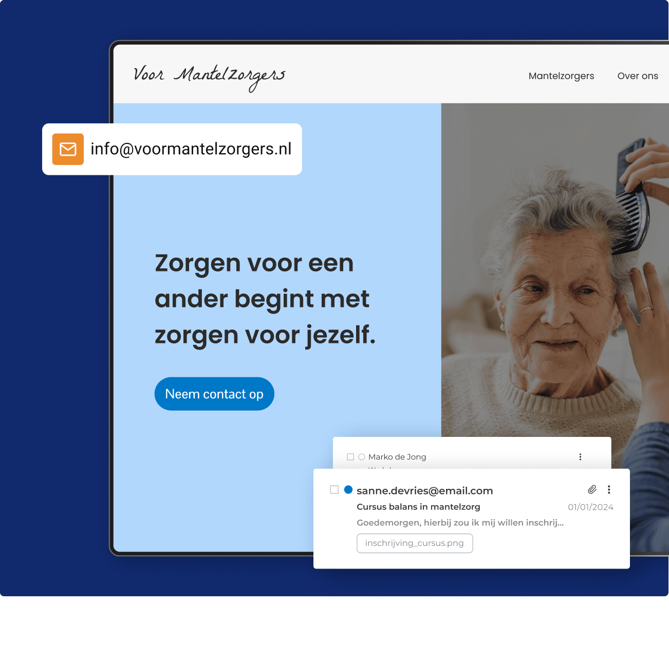Spreek je bezoekers en donateurs aan als een betrouwbare stichting. Mail vanuit jouw domeinnaam voor professioneel contact.