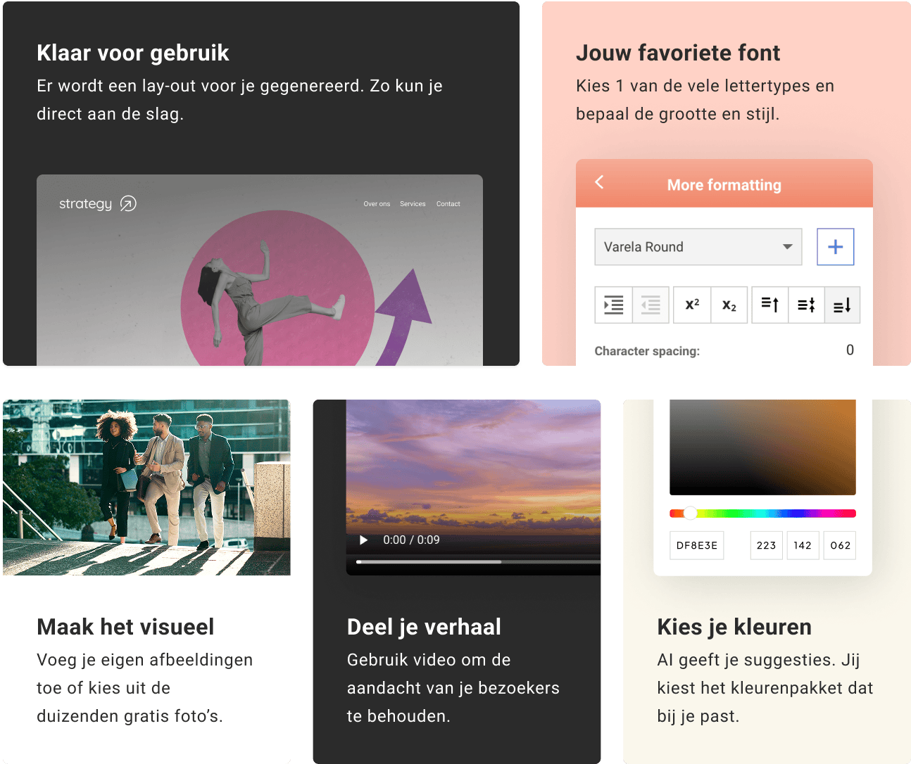 Als ondernemer doe je graag dingen zelf. En dat mag ook. Heb je toch behoefte aan een handje? Met de AI-tool kun je razendsnel een website bouwen. En de AI-Schrijfassistent helpt je met je creatieve teksten. Zo houd jij meer tijd over voor je werk.