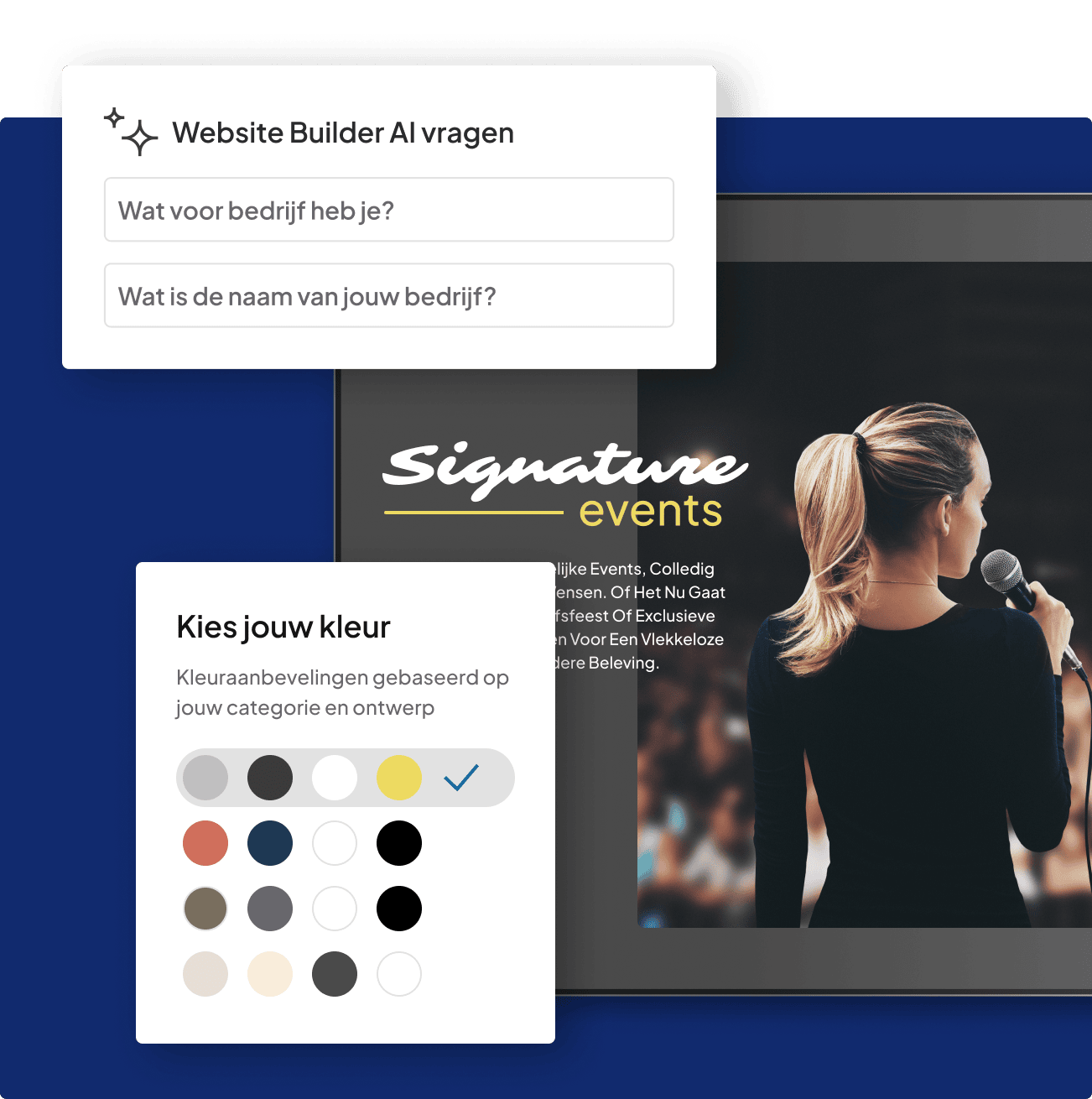 Creëer eenvoudig zelf een website voor je freelancewerk, of laat AI het werk voor je doen. Met de gebruiksvriendelijke Website Builder sleep je zonder technische kennis je website in elkaar.