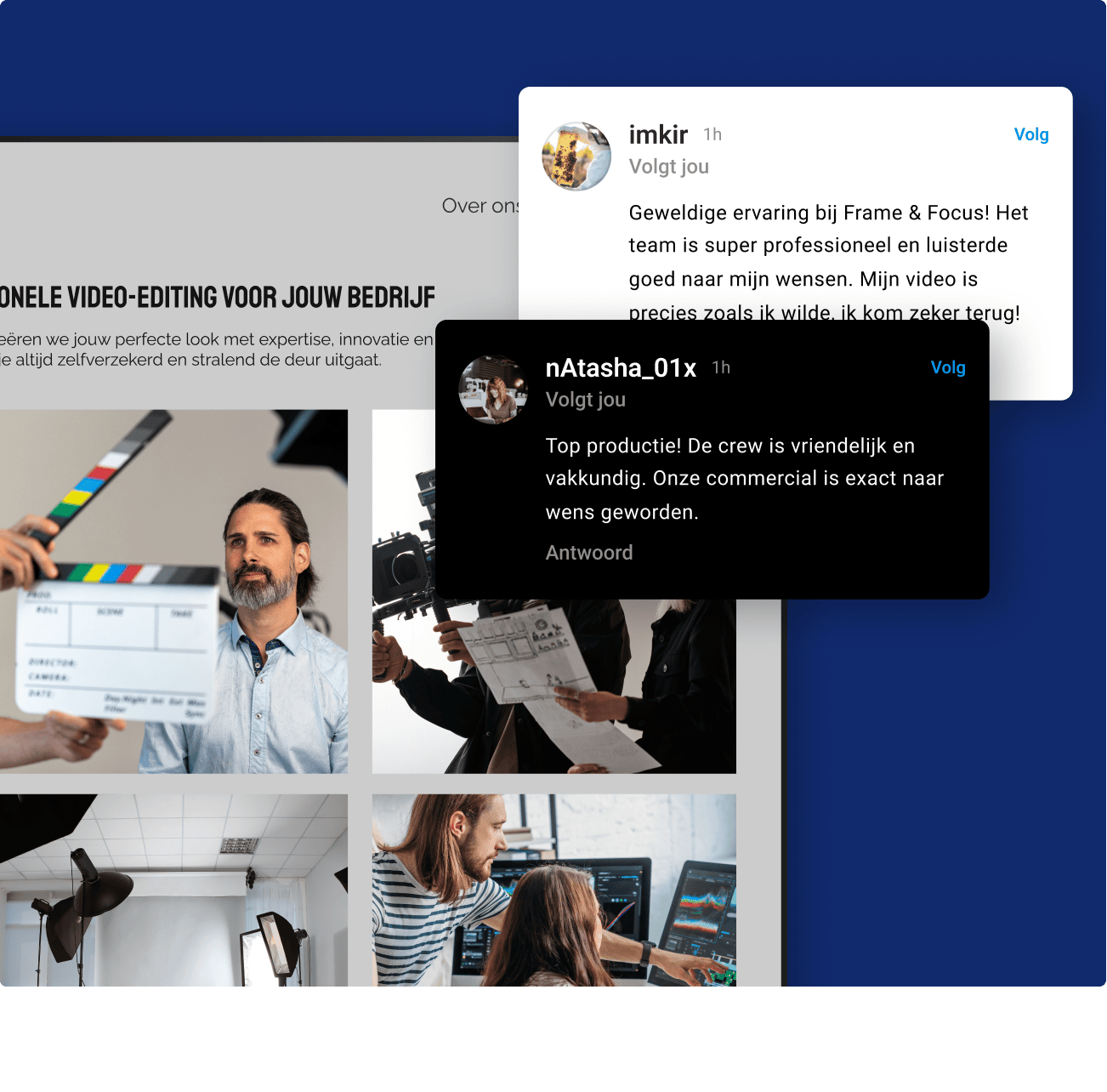 In een paar klikken voeg je jouw Instagram, Facebook, YouTube, Pinterest en/of X-profiel toe. Wil je nog meer vertrouwen wekken? In 1 klik integreer je Google Reviews. Zo weten klanten dat ze op je kunnen vertrouwen.