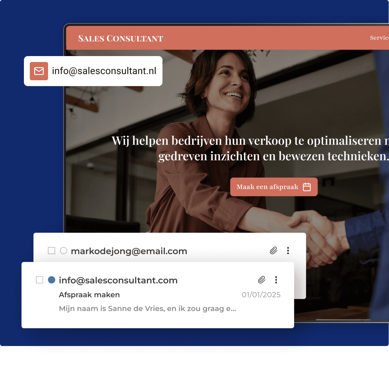 Spreek potentiële klanten aan als een betrouwbare partner. Mail vanuit je eigen domeinnaam voor professioneel contact.