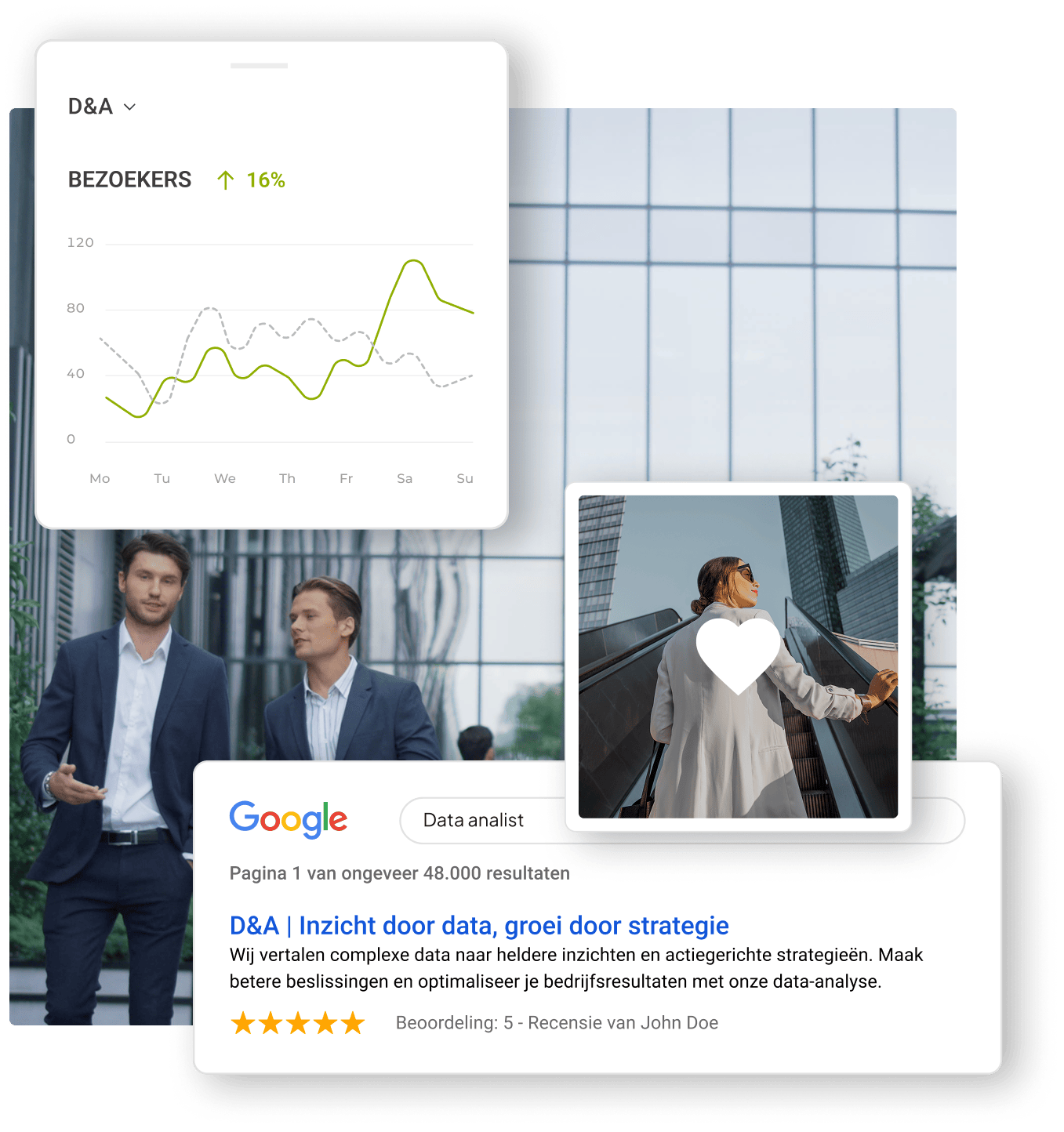 Houd je bezoekers en paginaweergeven bij in je persoonlijke dashboard. Of verbind je website met Google Analytics voor nog meer waardevolle inzichten en mogelijkheden.